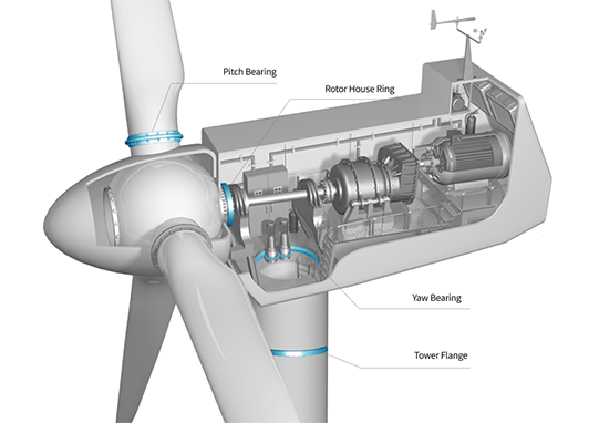 풍력발전기의 블레이드 각도를 조절하여 최적의 바람을 받을 수 있도록 하는 부품입니다.